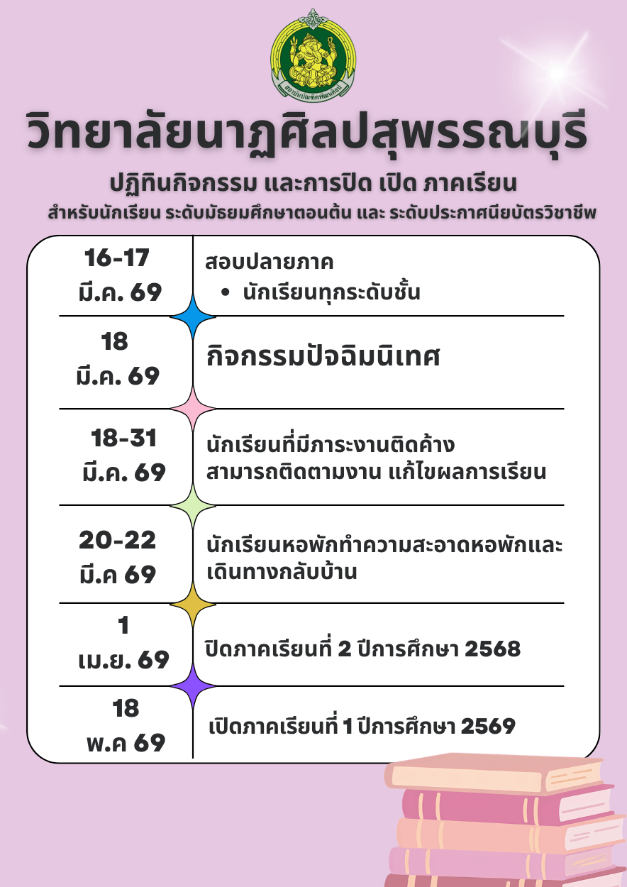 ปฏิทินกิจกรรม การปิด เปิด ภาคเรียน สำหรับนักเรียนทุกระดับชั้น